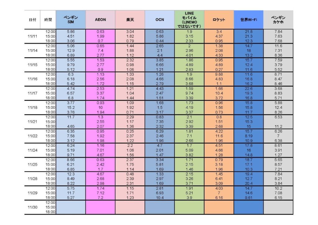 2022年11月11日~29日までの回線スピードテストの結果ですが、素晴らしい結果が出ています